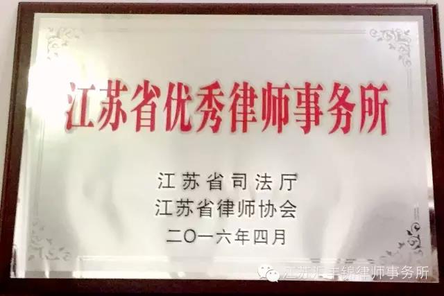 2016年4月17日,省司法厅、省律师协会召开全省优秀律师事务所、优秀律师表彰和省律协八届六次理事会,江苏汇丰锦律师事务所获“江苏省优秀律师事务所”荣誉表彰。
